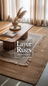 This tip changed the game. I put a larger, neutral area rug underneath a smaller patterned one—and boom—instant warmth and personality. It also made our small living room feel a lot more styled (and a little less rental-y).