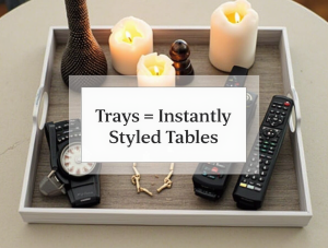 I corralled our remotes, coasters, and a candle on a round wooden tray. Suddenly, the coffee table looked styled instead of scattered. It’s a small shift that makes a big impact.