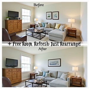 Start small with budget-friendly updates like new throw pillow covers, rearranging furniture, adding a few plants, or swapping in a cozy area rug. Even lighting changes—like using warm-toned bulbs or adding a stylish floor lamp—can make a big difference.