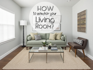 As a rule of thumb, your rug should be large enough so at least the front legs of your sofa and chairs sit on it. For small spaces, a 5×8 or 6×9 rug usually works well; for larger rooms, go for 8×10 or bigger to ground the space.