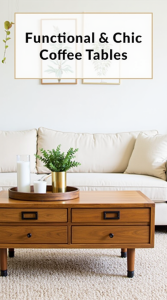 We lived with a basic particle-board table for months before I invested in a real wood coffee table with rounded corners and hidden storage. It’s now a centerpiece—and a secret junk-hider.